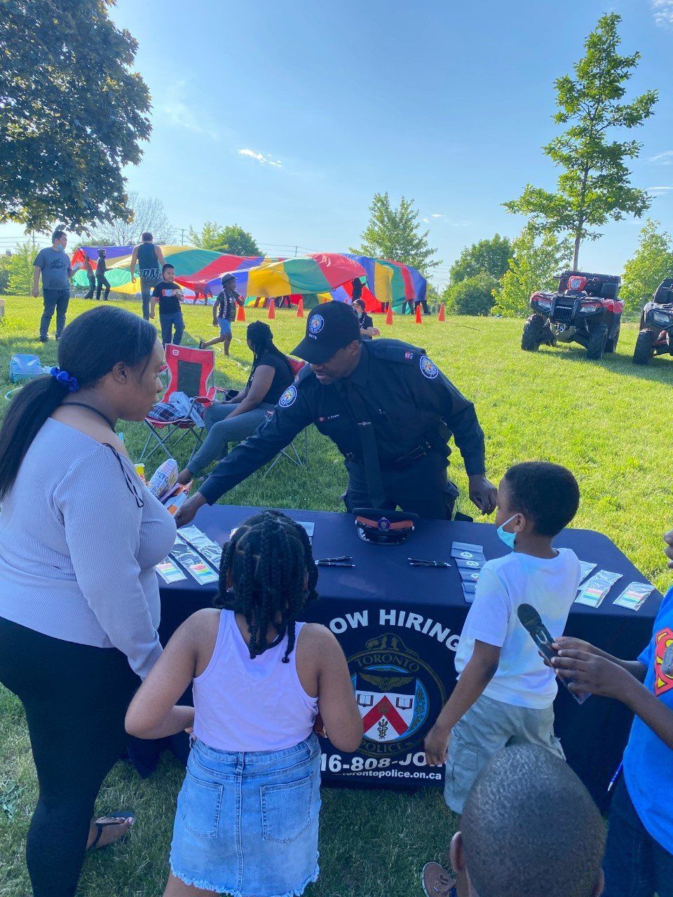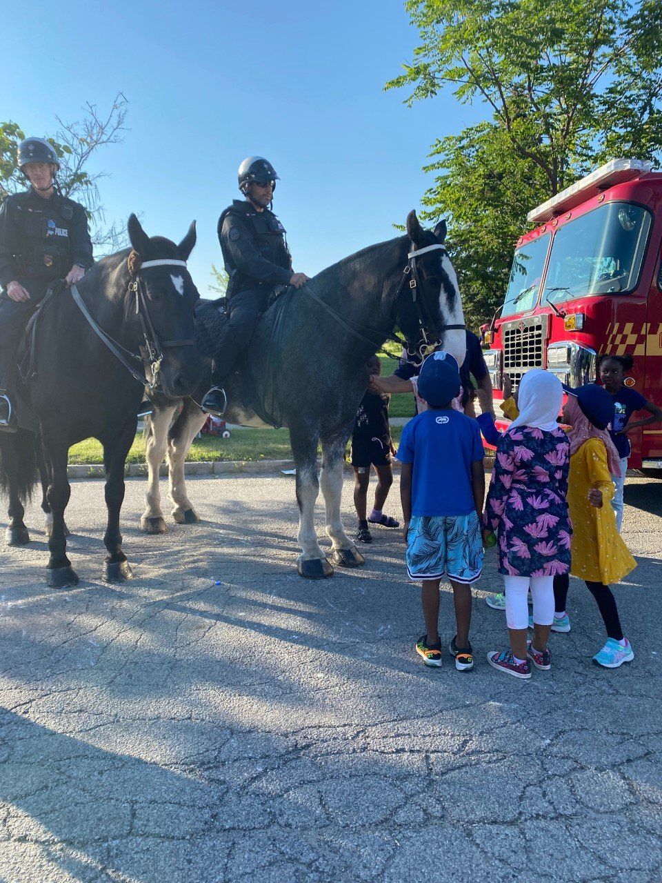 We had several special guests attend: Engage416, TPS Talent Acquisition, Toronto Fire Services and the TPS Mounted Unit. A lot of useful information relevant to the community was shared, and the kids loved interacting with the fire truck and horses!